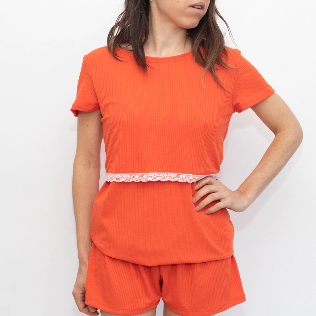 Remera manga corta + short con elástico en la cintura